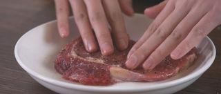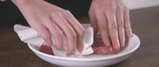 牛排解冻后,用厨房纸吸干水分