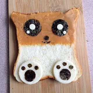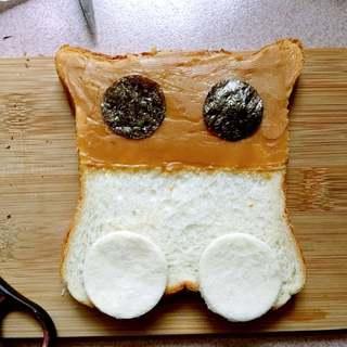 “面包片略发心思,抹上花生酱,造个卡通形,吃起来心情都美美哒。”