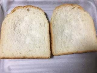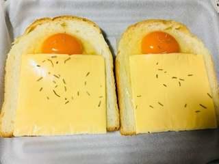 将吐司放入烤盘中,用勺子将中间压扁,这样鸡蛋不会流的到处都是